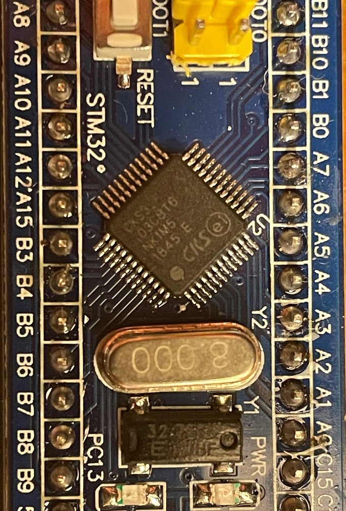 I got three versions of STM32F boards, one Cortex-M3 and two Cortex-M4’s:STM32F103C8T6 Arm Cortex-M3 MCU, 80 DMIPS, 64KB Flash / 20KB RAM, 72 MHz